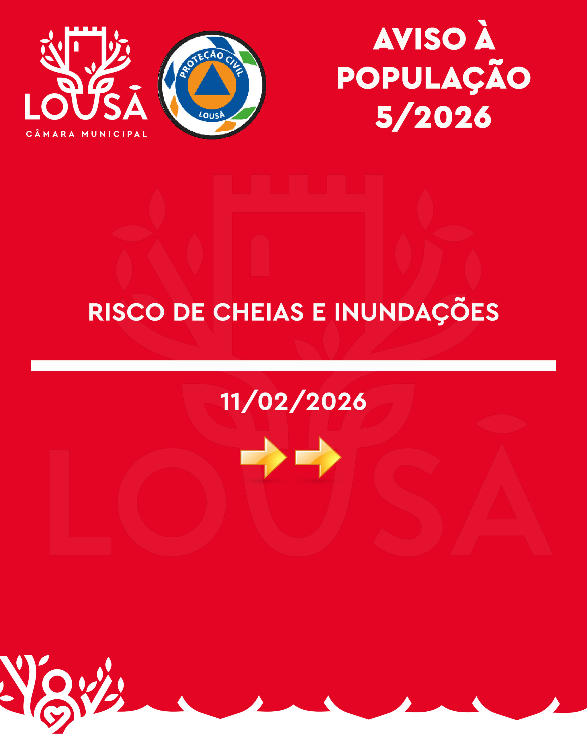 AVISO À POPULAÇÃO 05/2026 | RISCO DE CHEIAS E INUNDAÇÕES