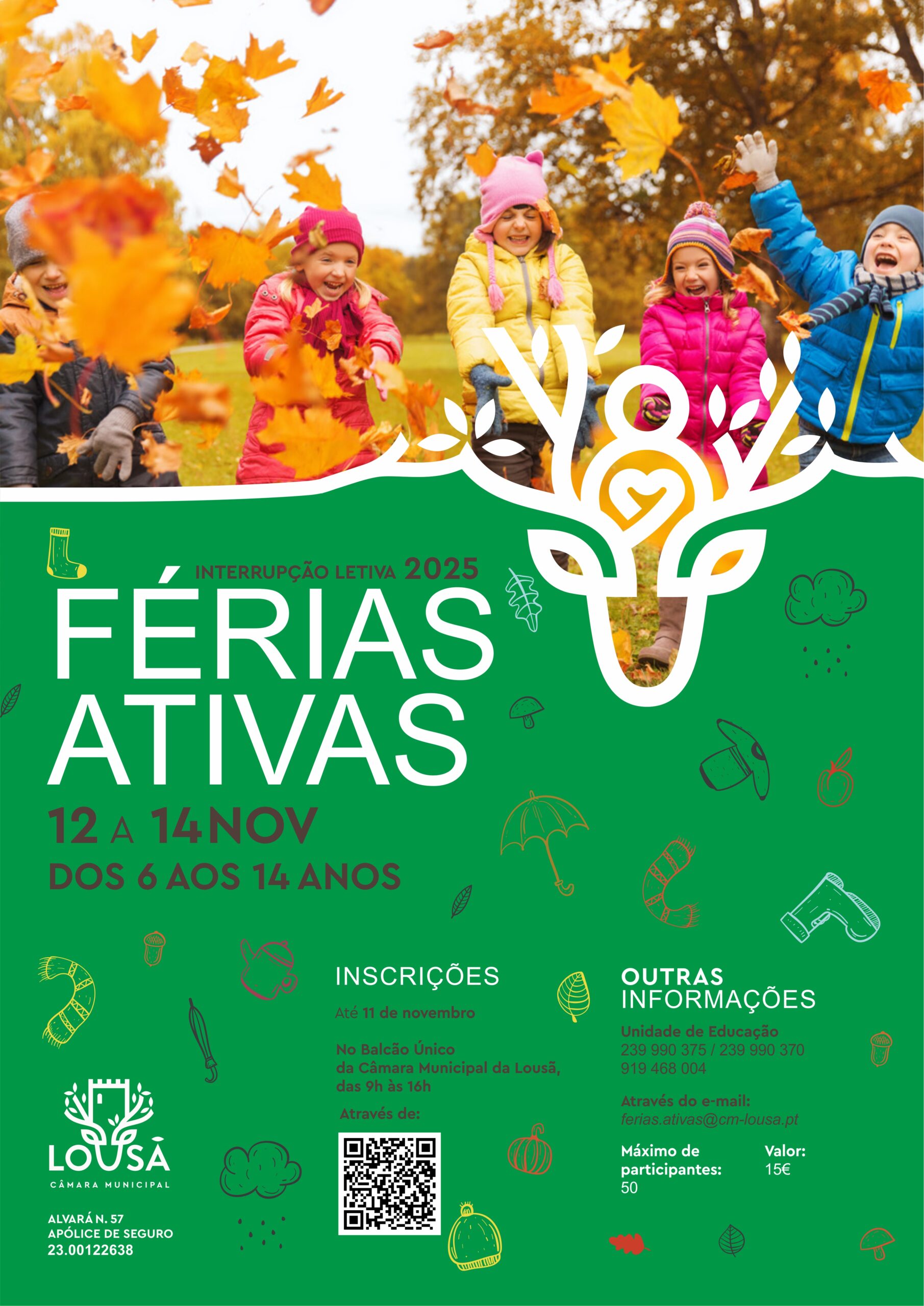 A Câmara Municipal da Lousã vai promover mais uma edição do programa “Férias Ativas – Interrupção Letiva”, destinado a jovens com idades compreendidas entre os 6 e os 14 anos e que decorrerá entre os dias 12 e 14 de novembro.